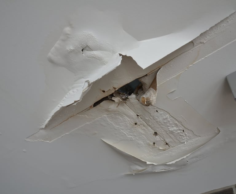 Water-damaged drywall resulting from plumbing leaks, roof leaks, or moisture intrusion